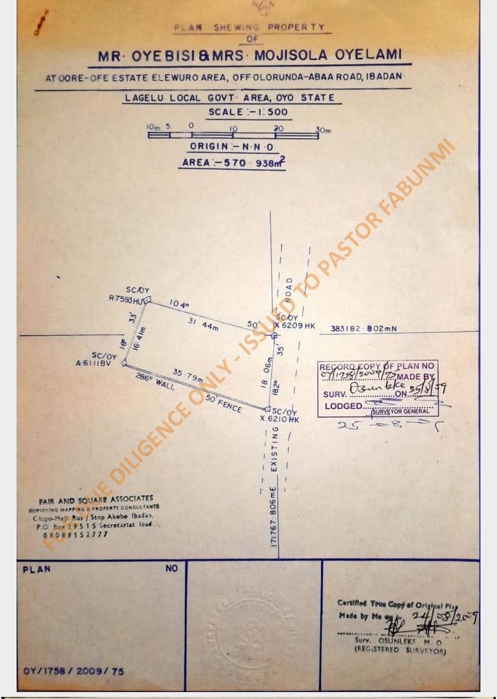2 story building at iyana oja academy Iwo road facing express road ibadan with Red copy survey